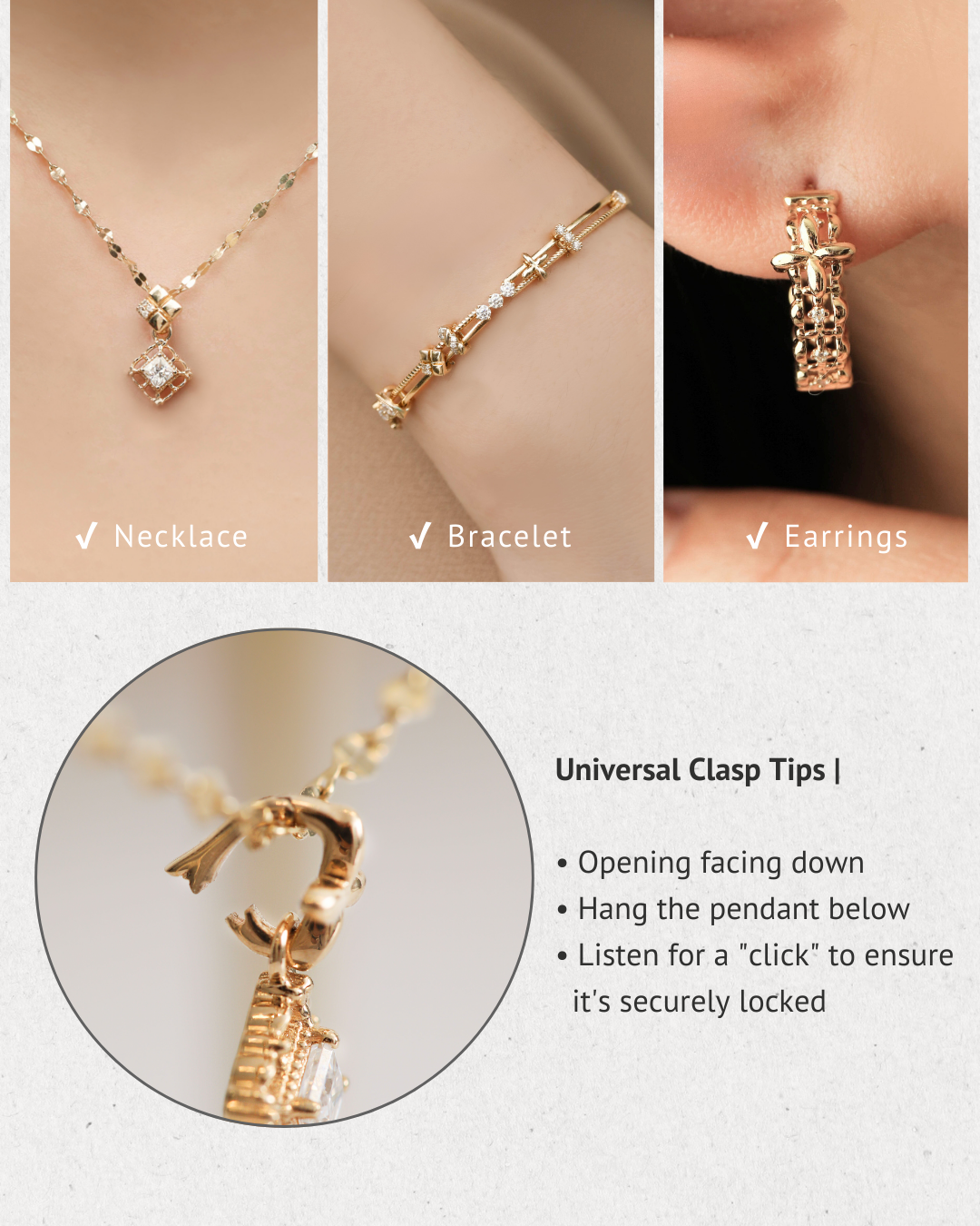 Double-sided design, wearable on both sides.(Additional universal clasp available below)
