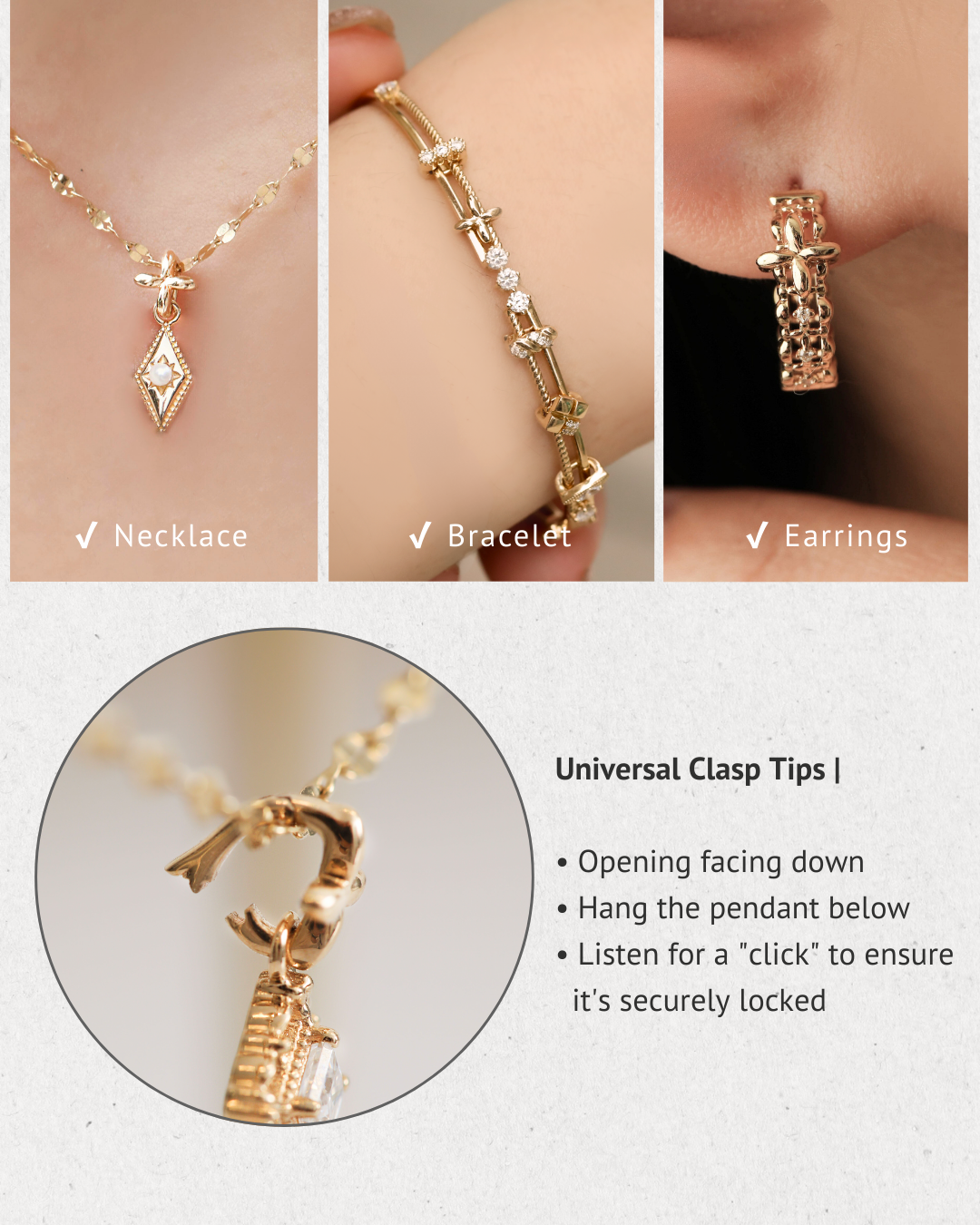 ☑️ Reminder: The universal clasp needs to be combined with a pendant to be used with the necklace
