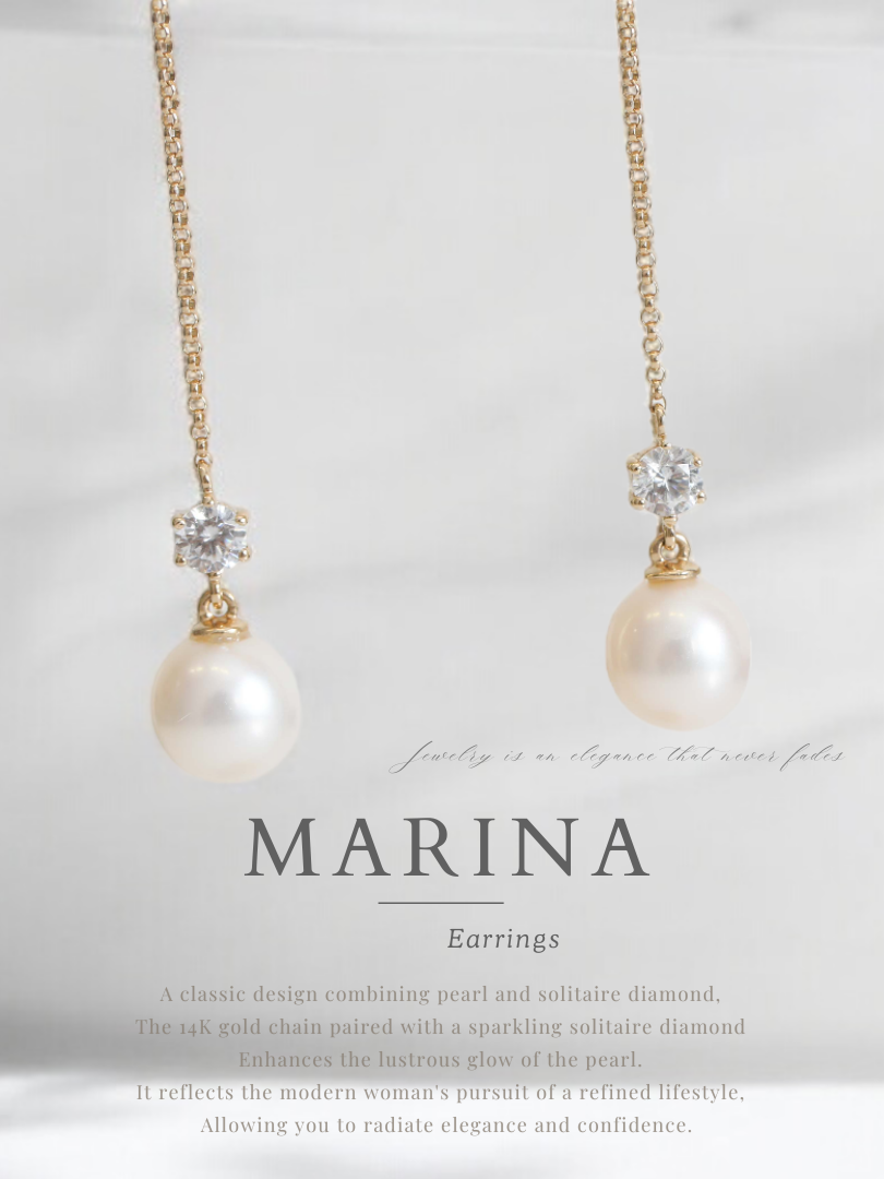 Material|14K Gold / 6mm Freshwater Pearl / Natural Diamond