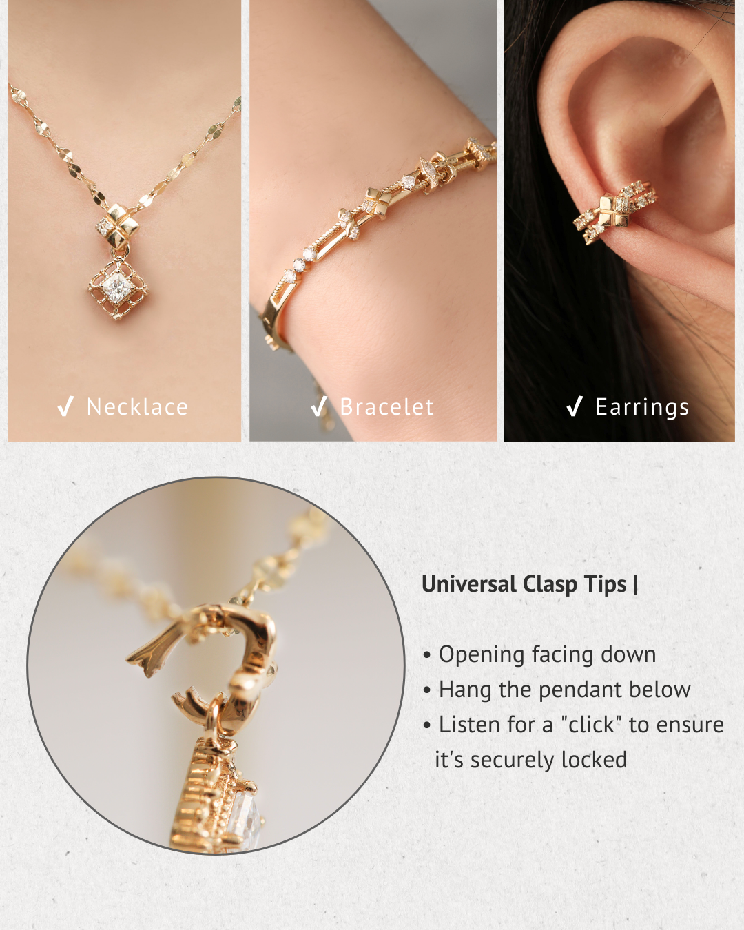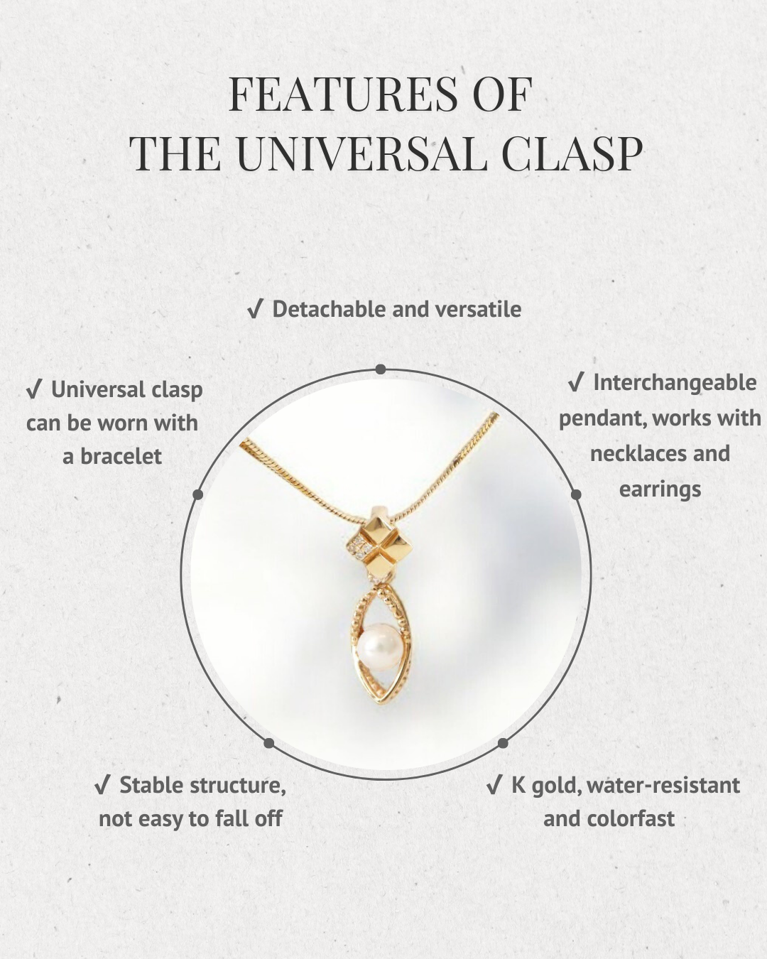 ☑️ Reminder: The universal clasp needs to be combined with a pendant to be used with the necklace