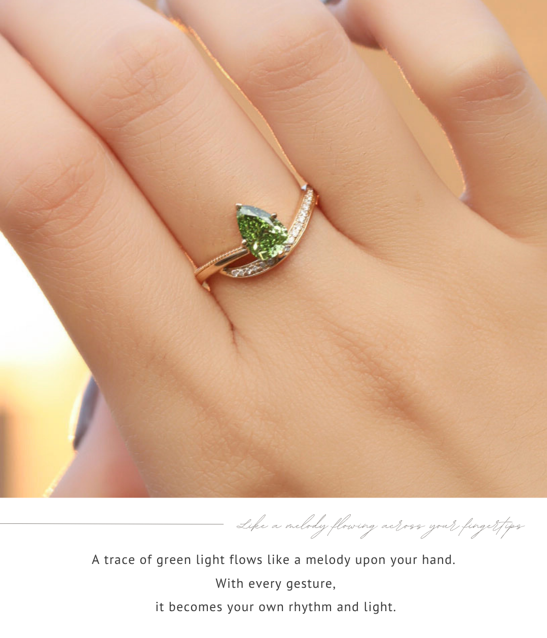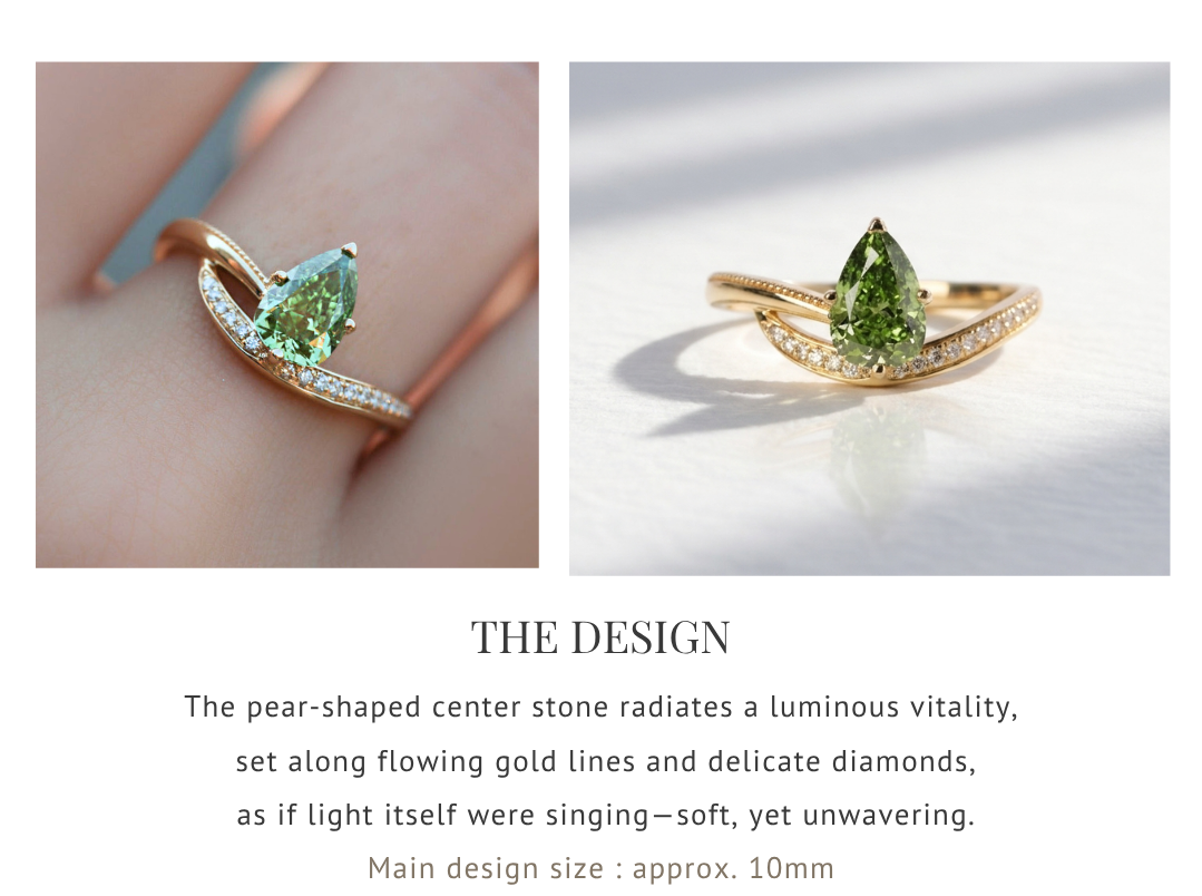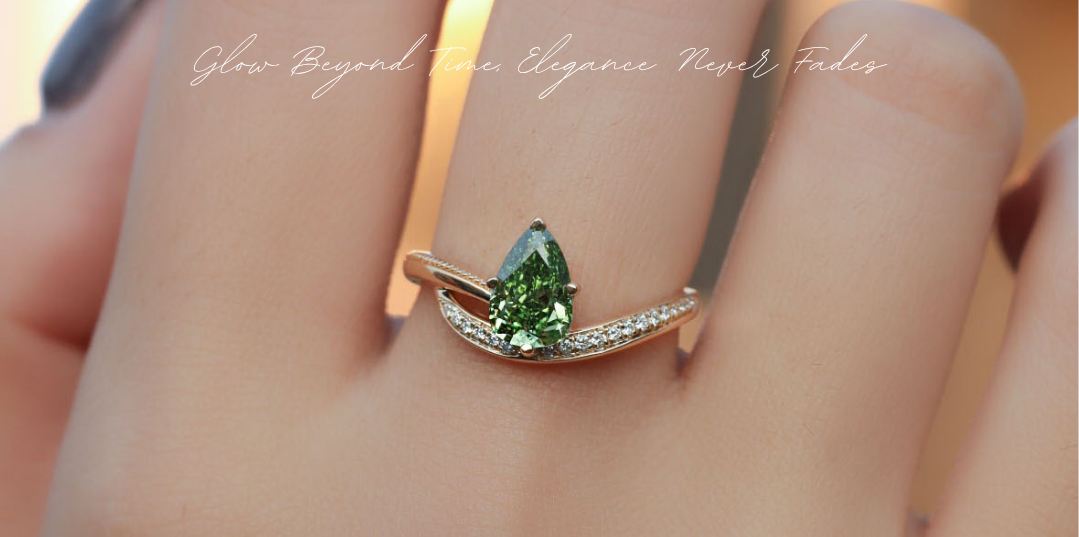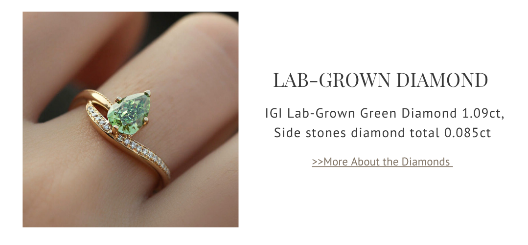 Poids en carats|Pierre Principale · Diamant vert cultivé taille poire 1,09ct (IGI) + Pierres Secondaires · Diamant Blanc Cultivé 0,085ct