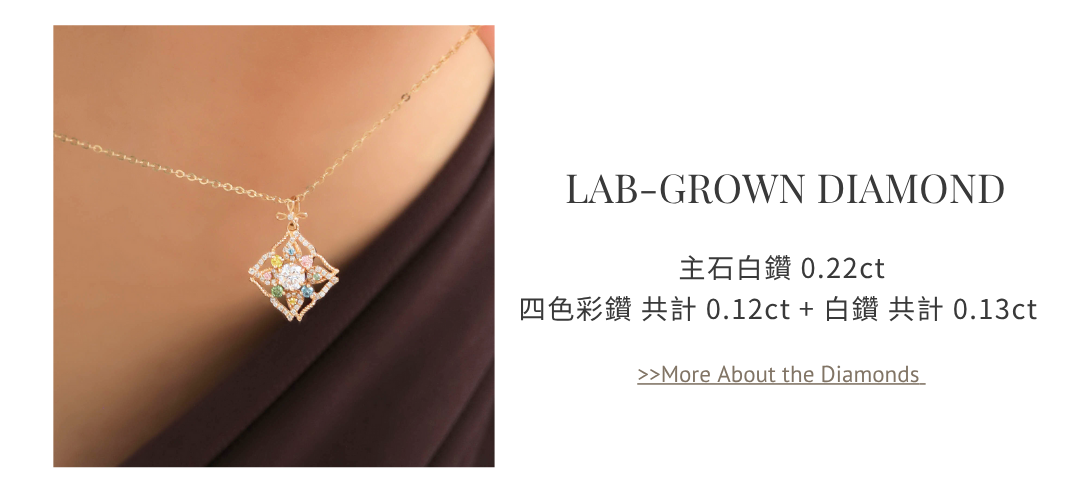 重量 Carat |主石 · 培育白鑽0.22ct + 副石 · 培育四色彩鑽 共0.12ct + 培育白鑽 共0.13ct