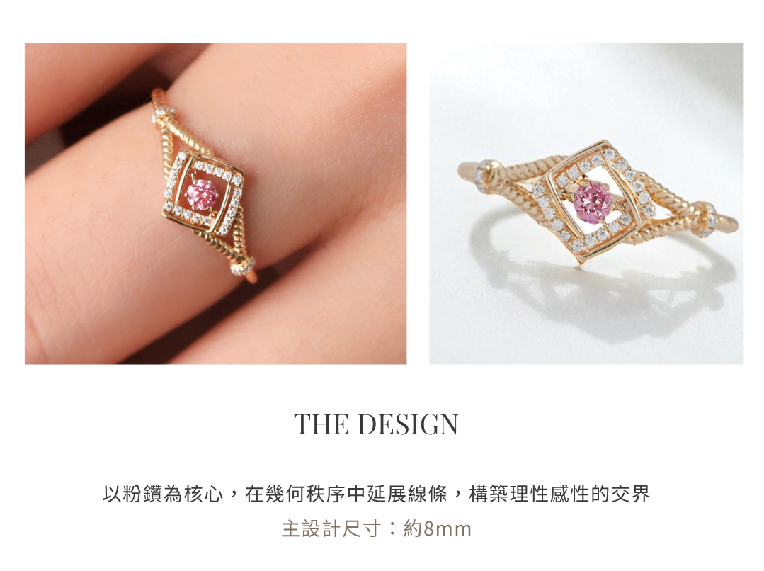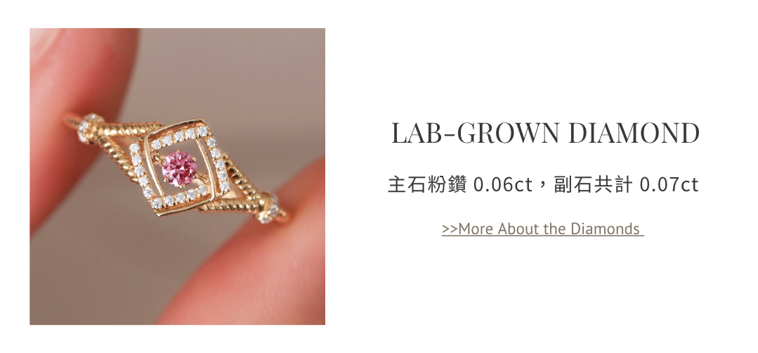 重量 Carat|主石 · 培育粉鑽0.06ct + 副石 · 培育白鑽 共0.07ct