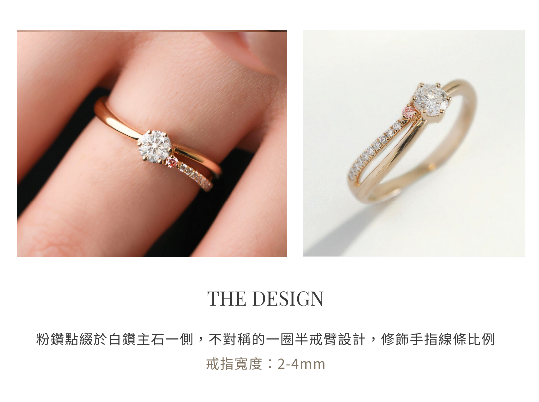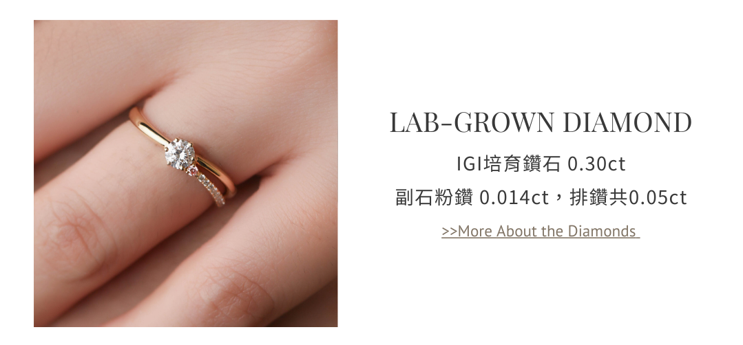 重量 Carat|主石 · 培育粉鑽0.3ct (IGI) + 副石 · 培育粉鑽0.014ct + 培育白鑽 共0.05ct
