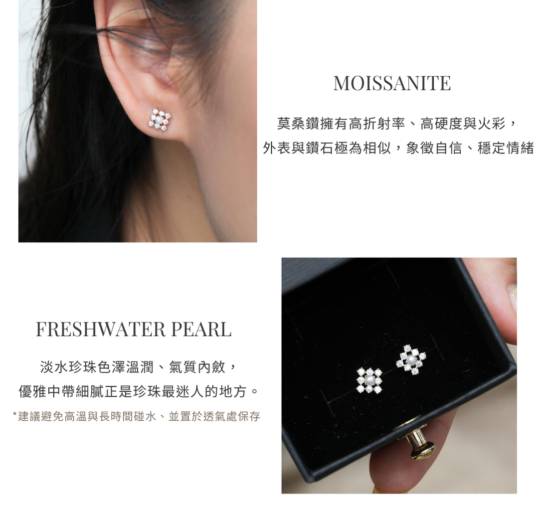 14K Gold / 天然淡水珍珠 / 莫桑鑽