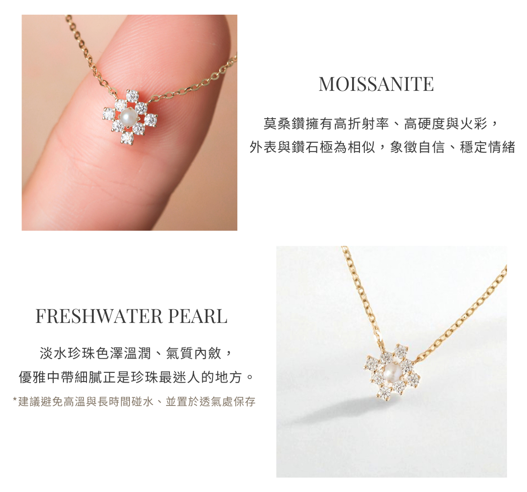 14K Gold / 天然淡水珍珠 / 莫桑鑽