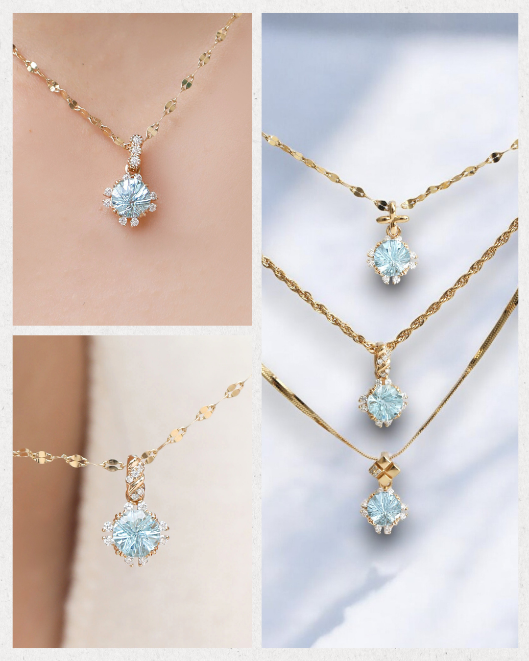 14K Gold / 倫敦藍托帕石 / 莫桑鑽