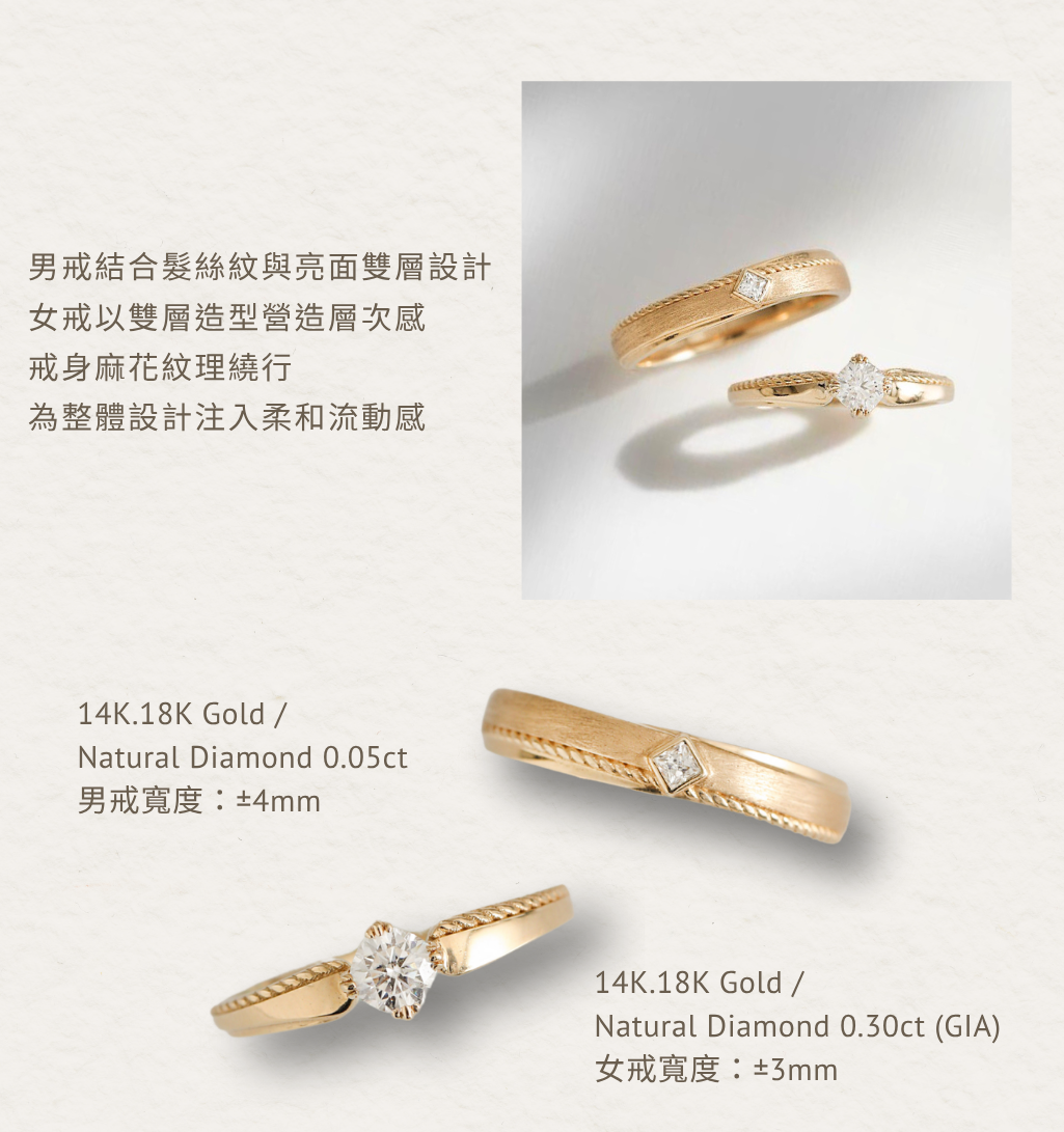 重量Carat |女戒 0.3ct / 男戒 0.05ct