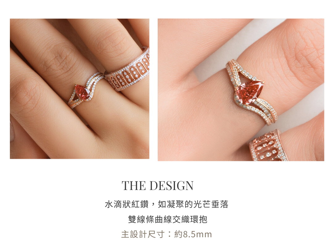 重量 Carat |主石 · 水滴狀 培育紅鑽 0.88ct (IGI) + 副石 · 培育白鑽 共0.27ct