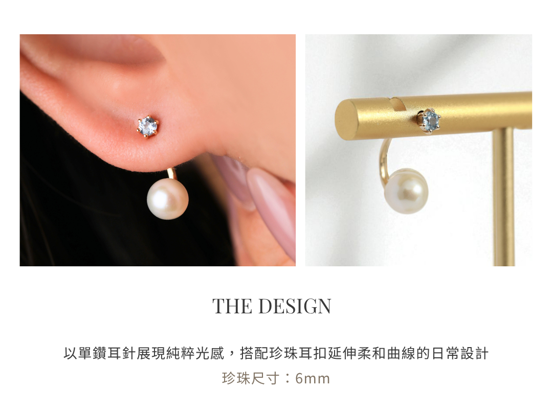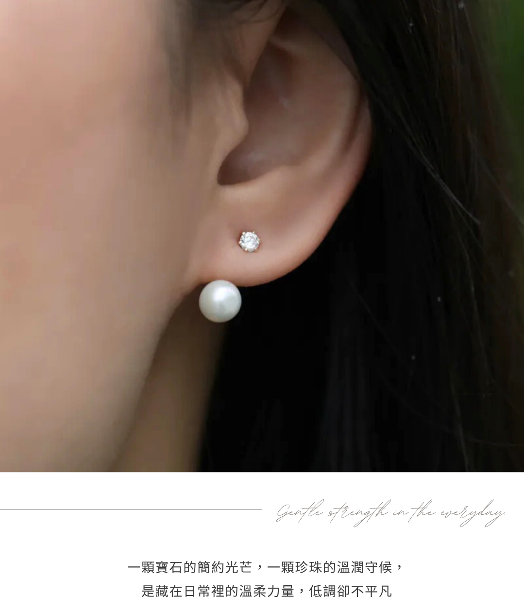 單鑽耳針與珍珠耳扣可自由分開搭配